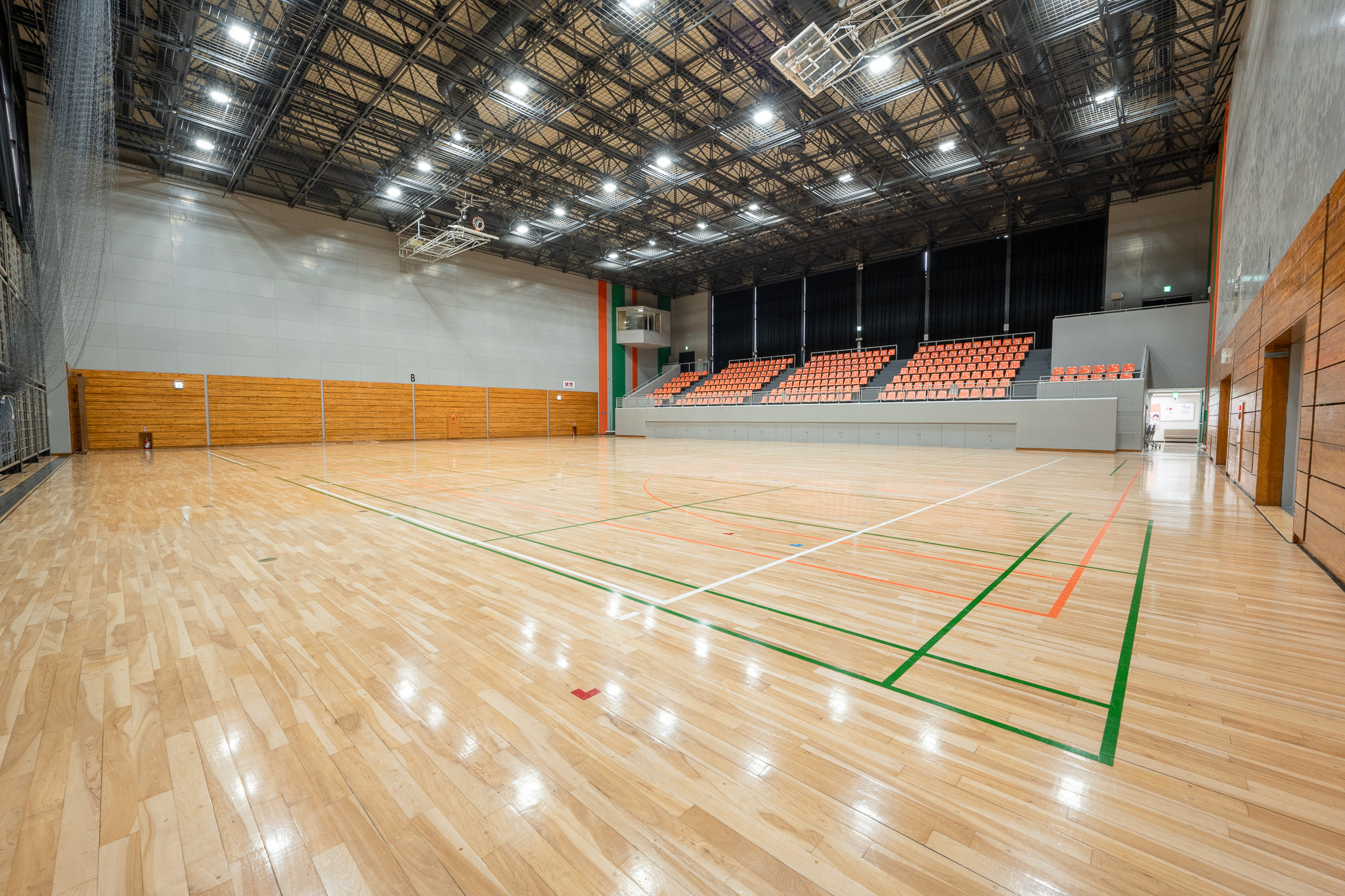 バレーボール2面・バスケットボール1面、バドミントン4面